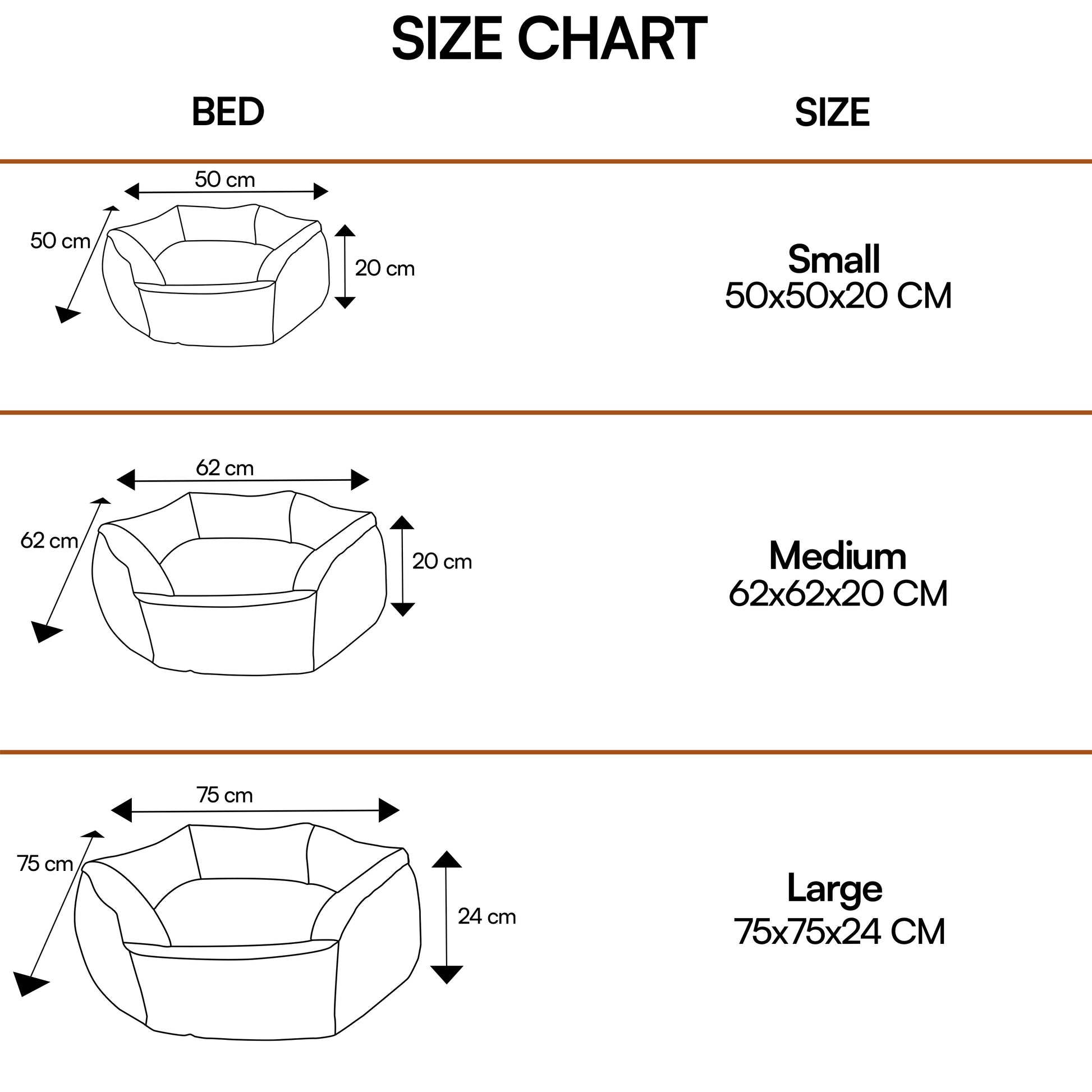 Large (75x75x24 cm): Spacious and cozy for large breeds to stretch and snooze.
